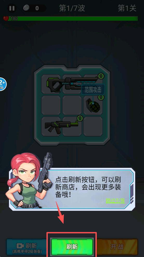 3、点击“刷新”按钮,获取更多或更高级的装备,提升战斗力。