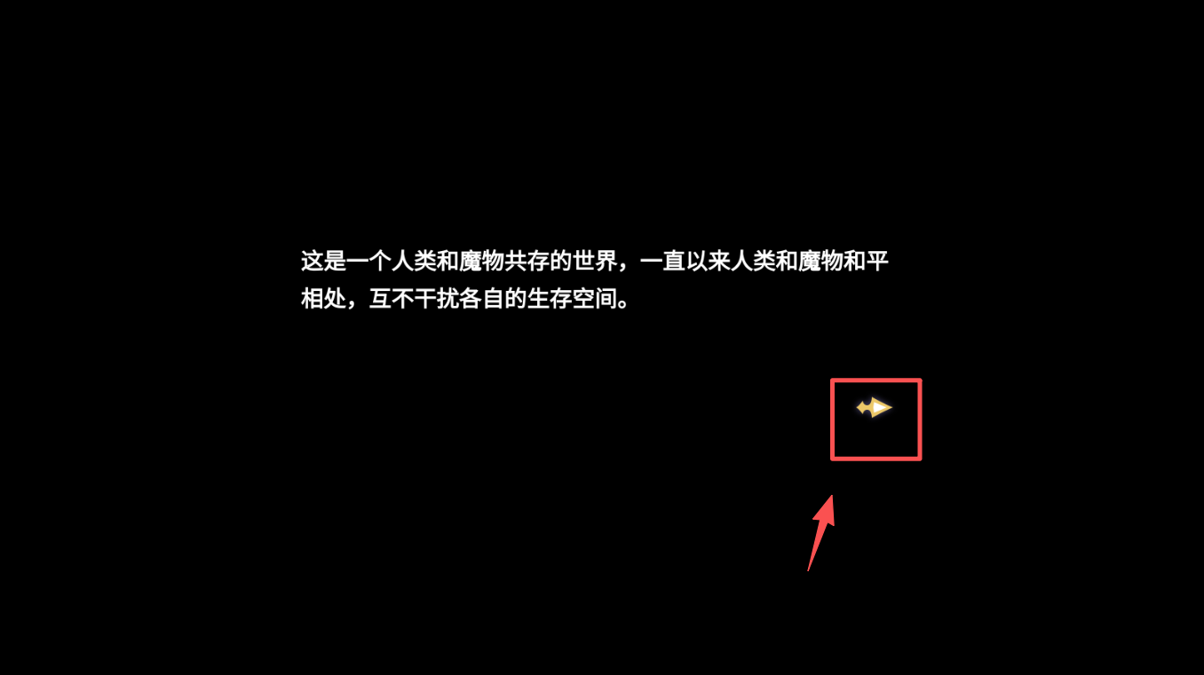 2、接着,点击屏幕右下方的箭头按钮,跳过开场动画,快速进入游戏。