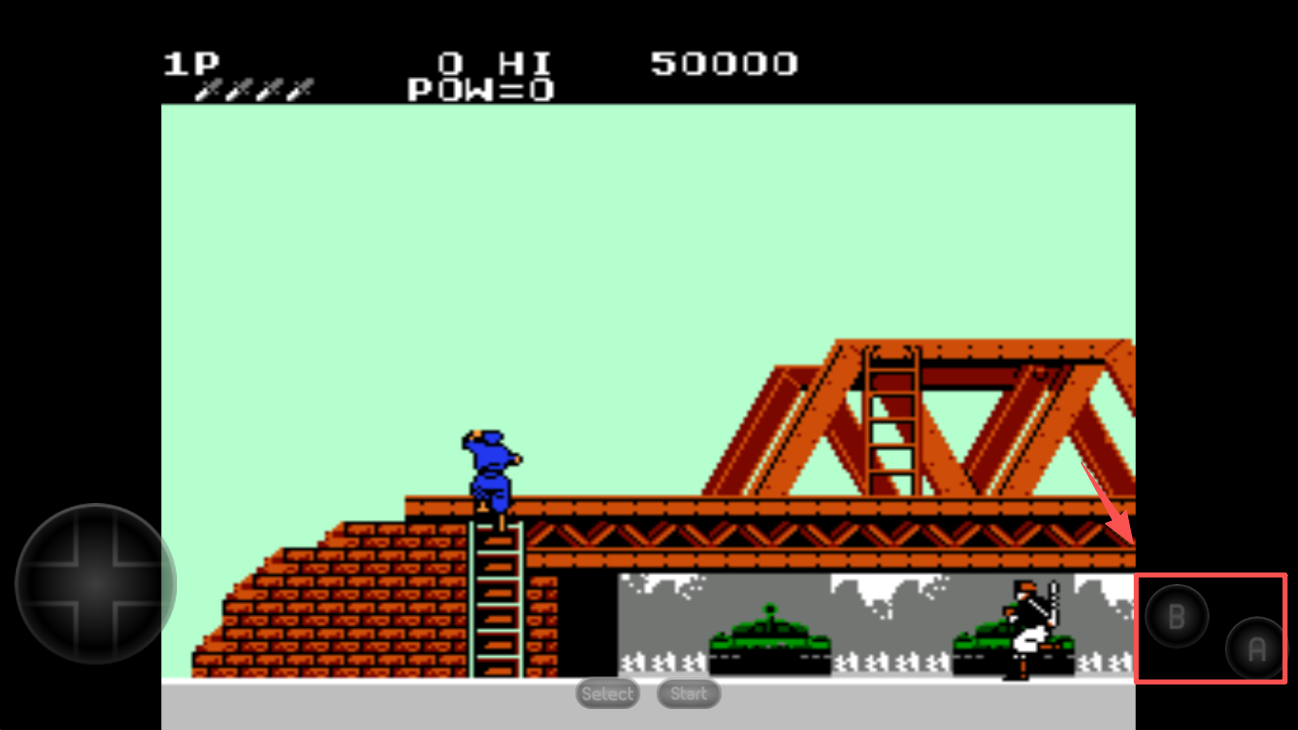 4、利用屏幕右侧的“A”和“B”按钮进行攻击和跳跃,与敌人战斗。