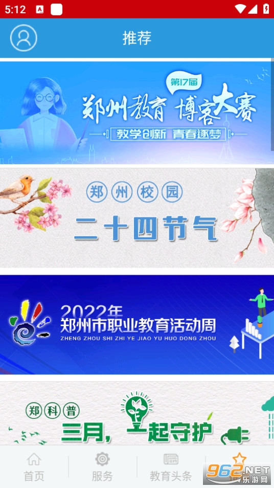 2.打开学在郑州app,点击左上角的头像