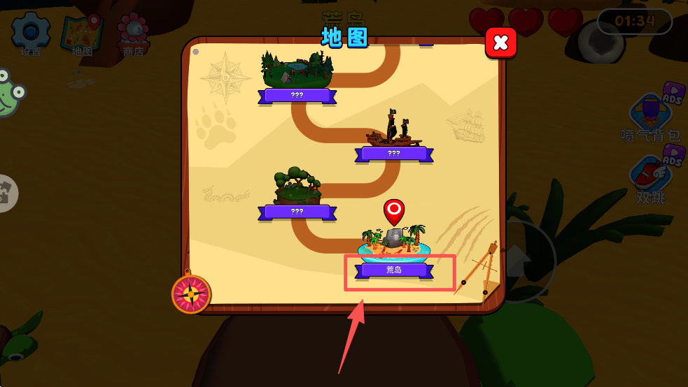 4、通过点击地图按钮查看游戏地图,了解当前位置和目标地点,规划你的路线。