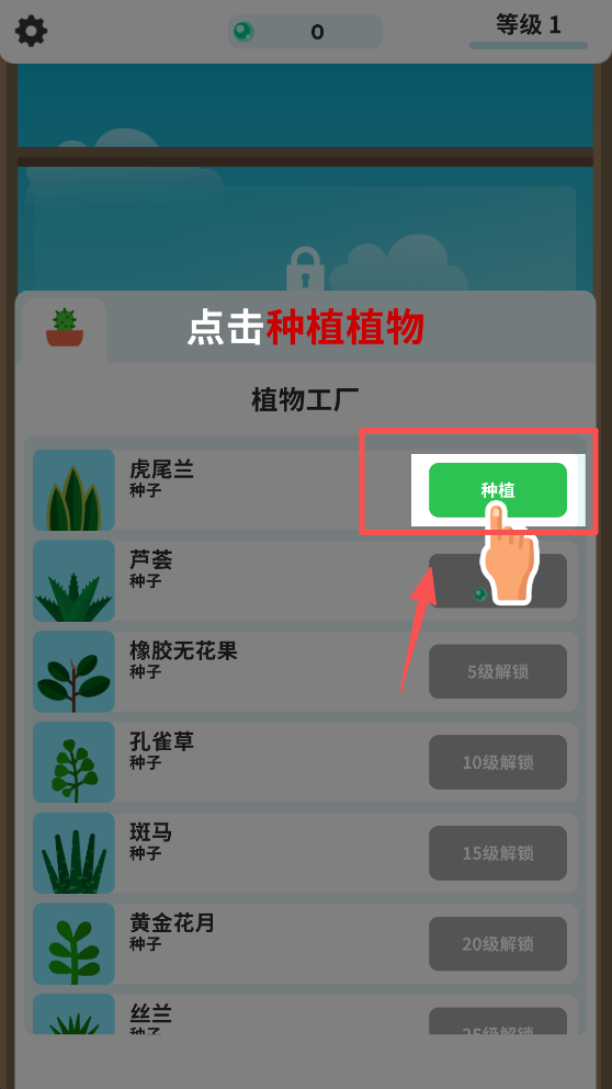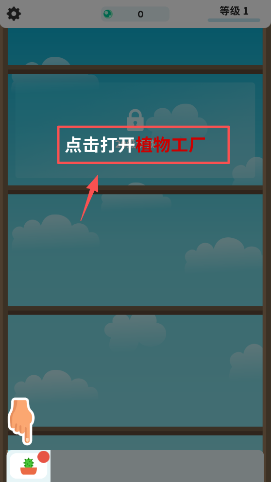 1、点击屏幕上的“点击打开植物工厂”按钮,进入植物种植界面。