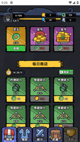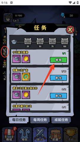 4、一切能领取的都领取完之后,不要着急去战斗,先看看有没有武器可以升级的,去升级一下。