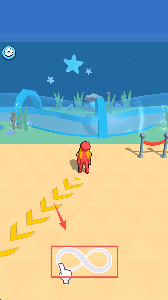 2、点击角色在屏幕上移动,进入游戏,开始你的海滩探险之旅。