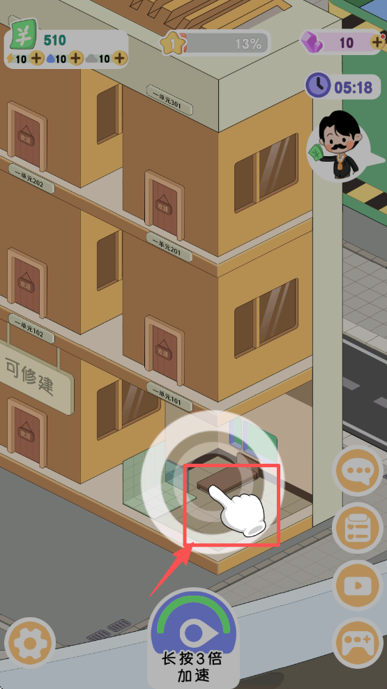 1、长按加速按钮,加快游戏进程,提高经营效率。