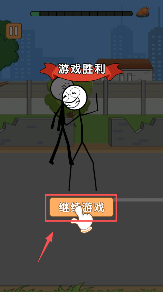 4、游戏胜利后点击“继续游戏”按钮,再次挑战或重新开始新的冒险