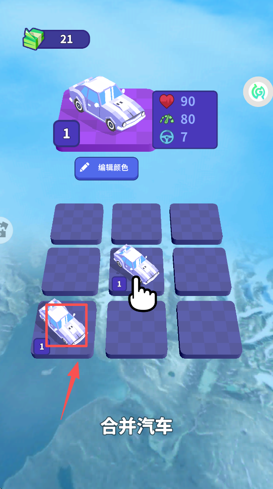 4、合并相同的赛车以升级,提升赛车性能,为下一关做准备。