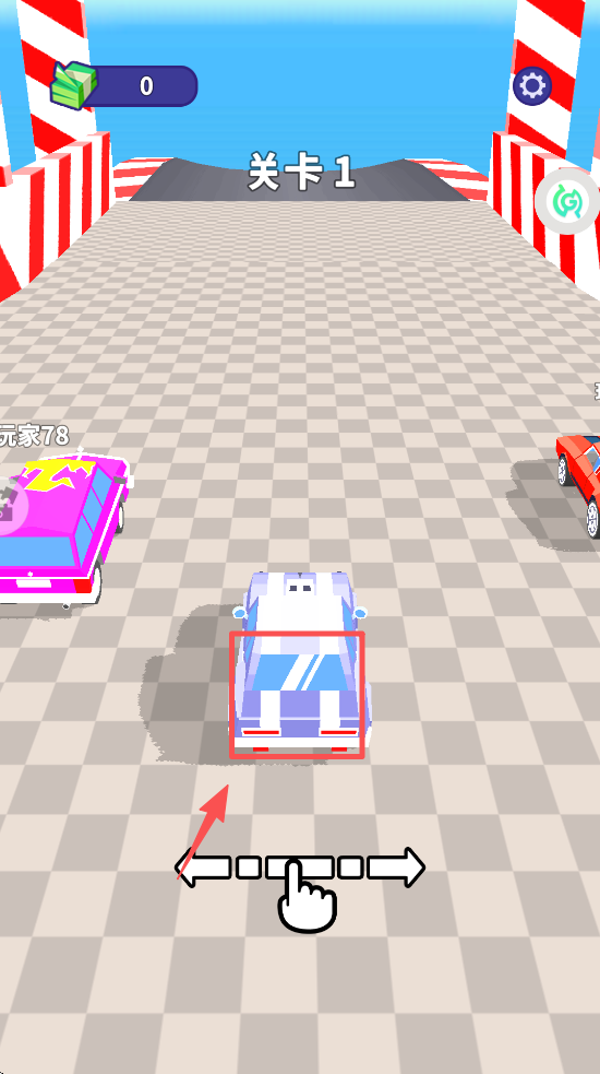 1、首先,通过滑动屏幕控制赛车移动,收集赛道上的金币。