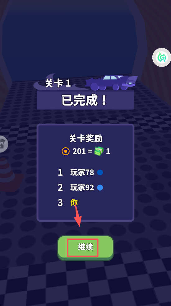 2、完成关卡后,点击“继续”按钮领取关卡奖励。