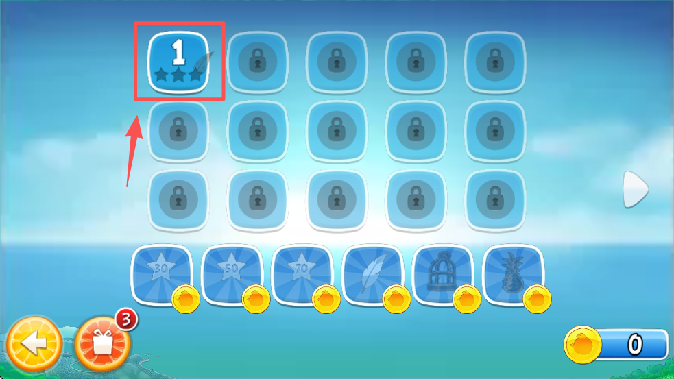 3、进入关卡,点击数字“1”,进入第一关,准备发射小鸟。