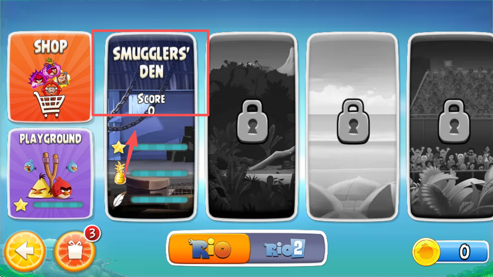 2、选择关卡,点击“SMUGGLERS' DEN”选择关卡,开始挑战。
