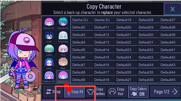 4、在定制界面,选择“Copy All”复制角色外观,或单独选择服装、发型等进行定制。