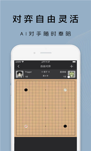 3、自由对弈中,执黑执白、用时等任你挑选,想怎么玩就怎么玩。