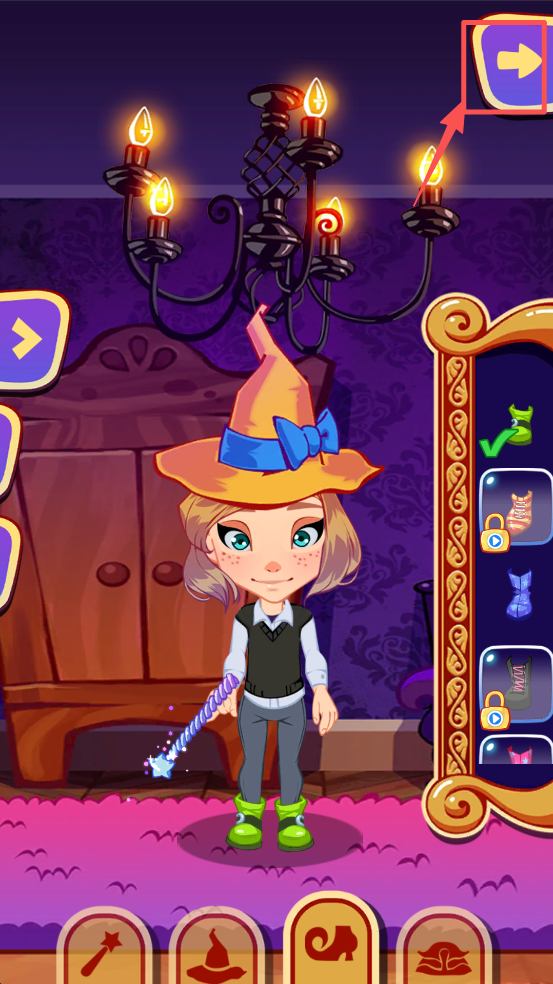4、完成装扮后,点击界面上的箭头,进入下一环节或展示你的装扮成果。