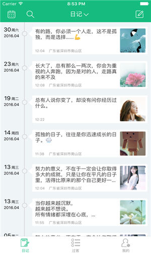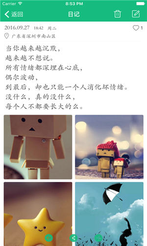 2、「照片」每篇日记可添加20张照片,不再单纯的文字。