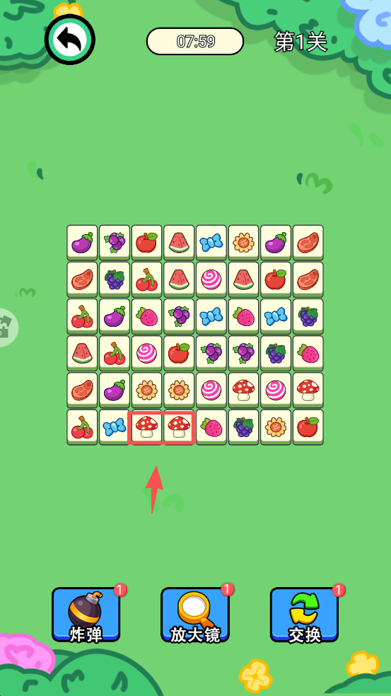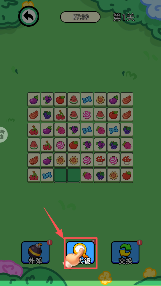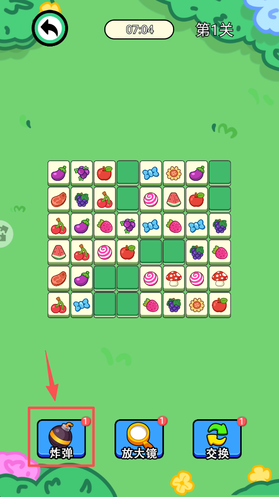 4、点击“炸弹”等道具按钮,在限定时间内消除所有图案,完成关卡。