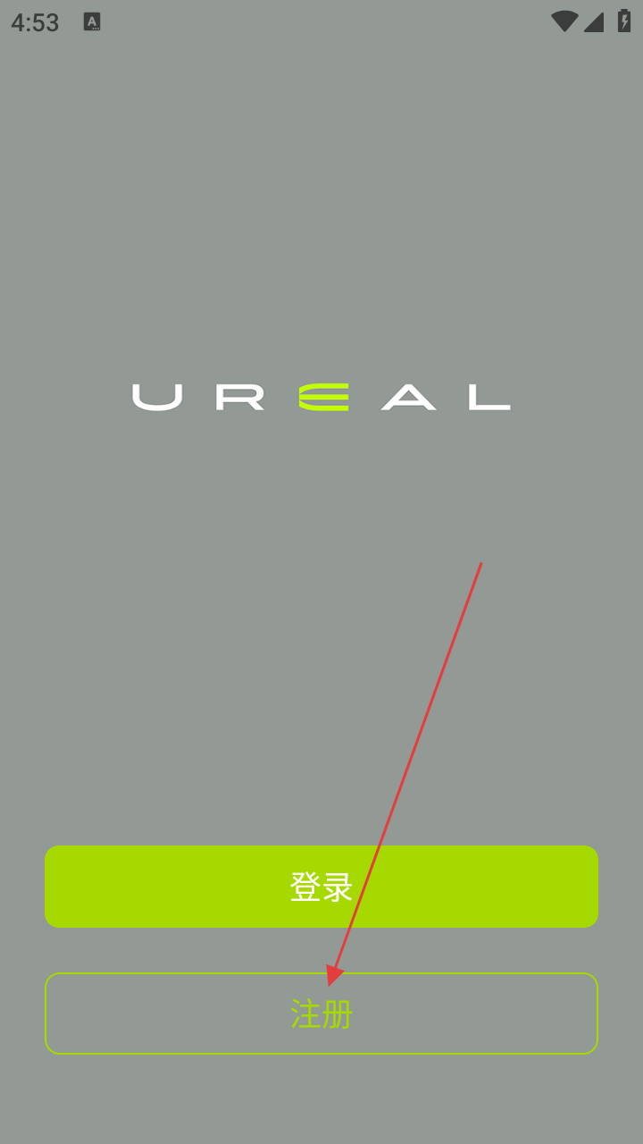 2、在应用主界面,找到并点击【注册】按钮,跳转至注册页面。