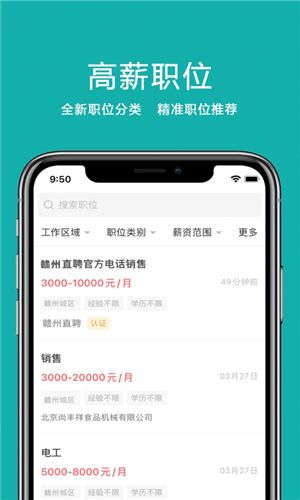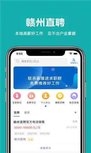 安卓赣州直聘app官方版是赣州本地最受欢迎的网络招聘平台,每年都为各当地企业输送海量新鲜血液。赣州直聘app官方版中可以为您带来赣州本地最为齐全的招聘资讯,一定有很吸引您的工作。