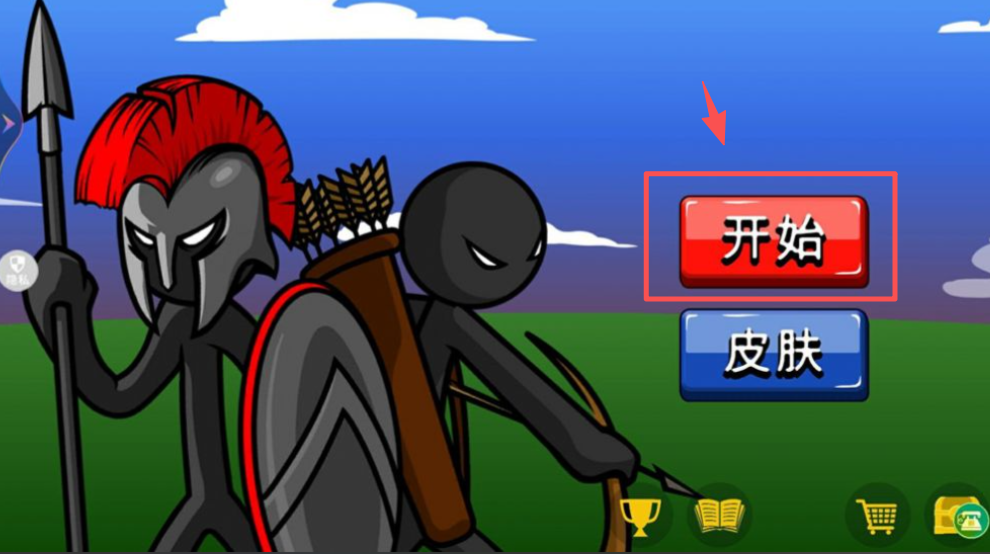 1、首先,点击主界面的“开始”按钮,进入游戏,准备开始你的战斗之旅。