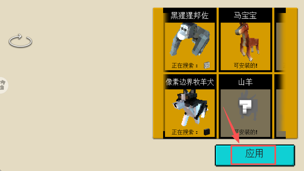 2、在角色选择界面,点击“应用”按钮选择你的角色或宠物,然后确认选择。