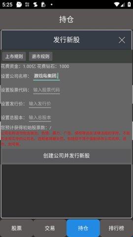 安卓真实炒股模拟器手机版是一款由熊二工作室推出的文字类炒股模拟经营手游,打造了一个由全体玩家共同塑造的虚拟金融战场。玩家在游戏中可进行股票买卖、股息分红、发行新股等操作,甚至通过挖矿获取钻石。另外,真实炒股模拟器手游内的每笔交易都可能影响股价走势,目标是通过策略积累虚拟财富,冲击龙虎榜,体验“金融巨鳄”的乐趣。