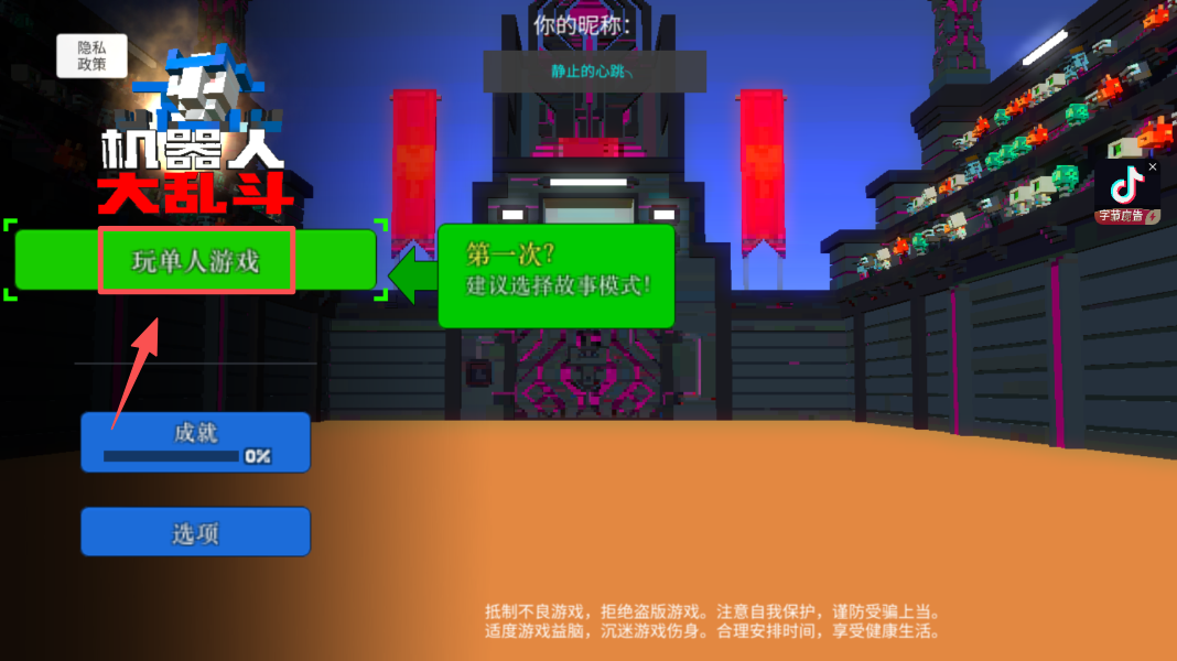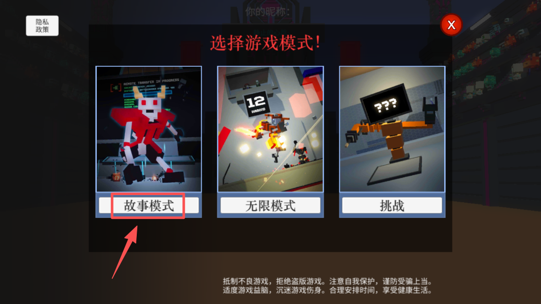 2、选择“故事模式”,点击后点击“新游戏”,开始你的机器人大乱斗之旅。