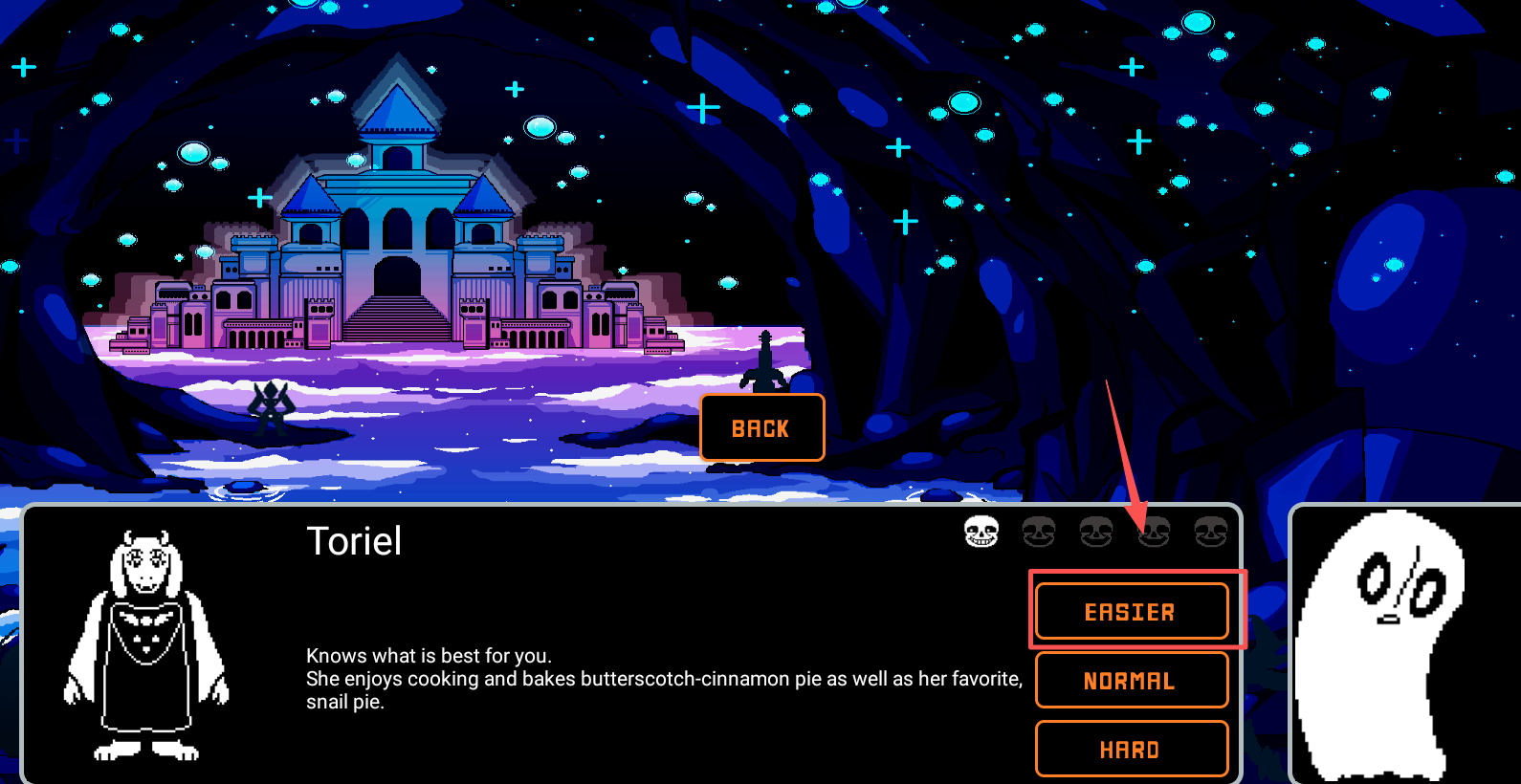 2、选择游戏难度,在角色选择界面,点击“EASIER”选择难度。