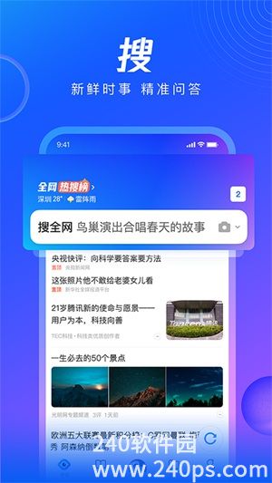 安卓2022手机qq浏览器最新版本是一款非常受用户喜爱的手机浏览器软件,在这里提供了非常多实用的功能给用户使用。你可以在遇见困难问题的时候在这里输入你的疑问,很快就能够问你解答,非常迅速。2022手机qq浏览器最新版本而在你空闲时间比较长,又比较无聊的时候,还可以打开这款软件来观看各种新闻、视频以及小说,都是消磨时间的利器。想必通过这些描述,大家都能够发现这款软件有着多款软件的功能,非常舒服。除此之外,软件在生活应用的场景中也起到很大的作用,你可以在这里点餐、订票、预约各种事情、快递的查询等,是你最好的生活小助手,有需要的朋友快来下载体验吧。