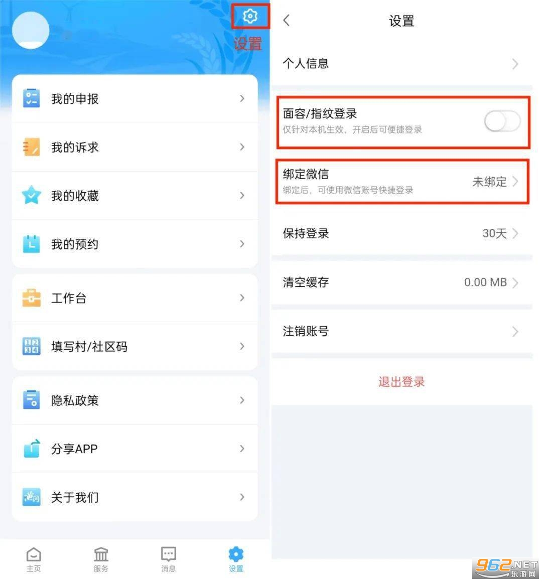 首次登录成功后,可在设置页面开启“面容/指纹登录”或“绑定微信”,开启后在此登录可使用手机自带的面容/指纹登录或微信授权快捷登录。