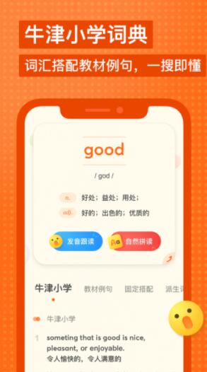 支持中文查字、英文查词,图片词典、汉字笔顺、自然拼读、跟读练习、语音助手等功能,