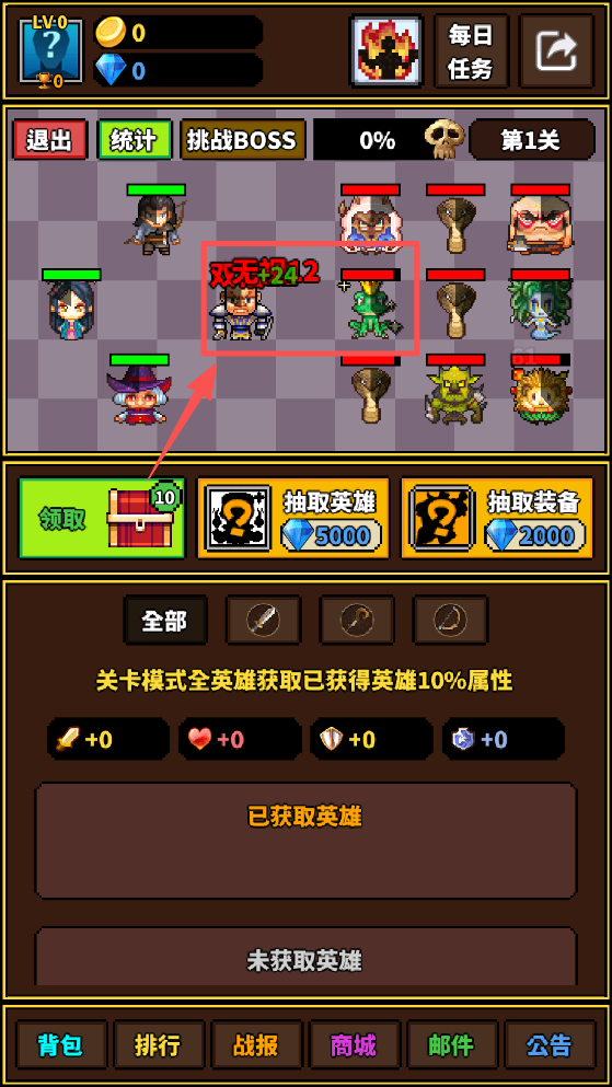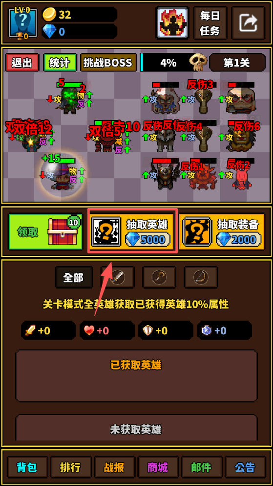 4、点击“抽取英雄”按钮,获得新的英雄角色。