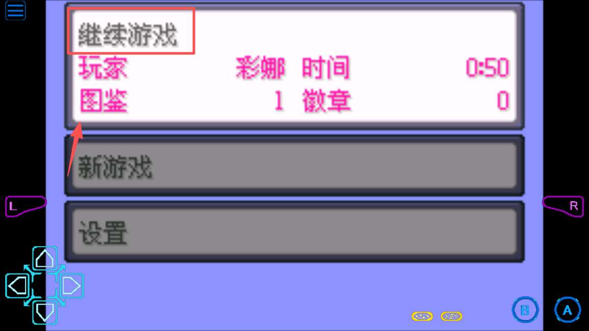 2、在游戏标题界面,点击“A”按钮以进入游戏,并选择新游戏或继续游戏。