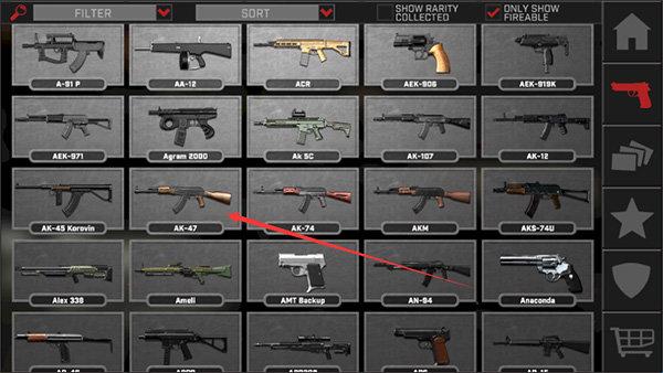 2、枪械库内包含手枪、步枪、狙击枪等,可按分类选择感兴趣枪械。