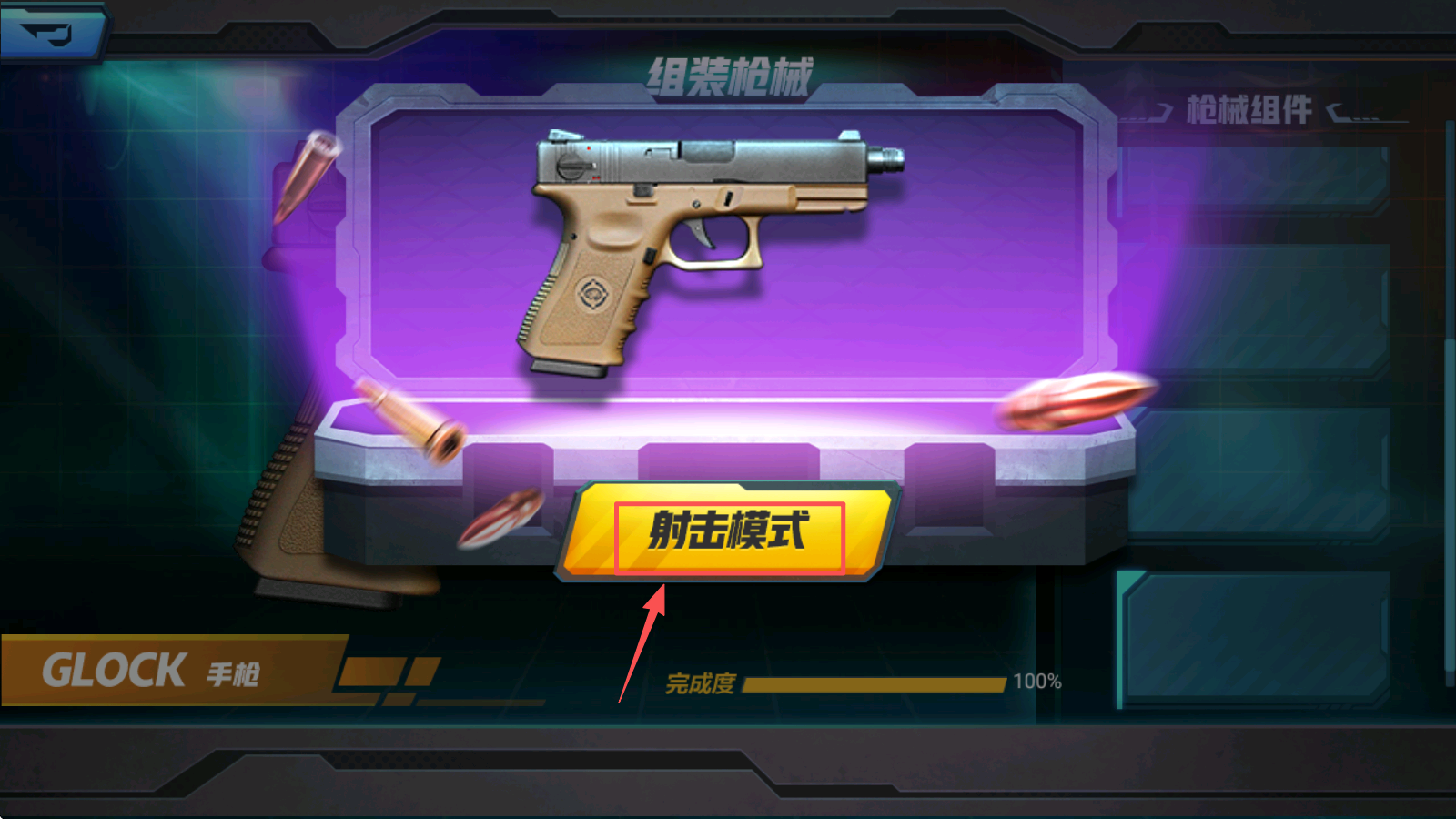2、在组装枪械界面,选择各个枪械组件。正确组装各个部件是使用枪械前的必要步骤。