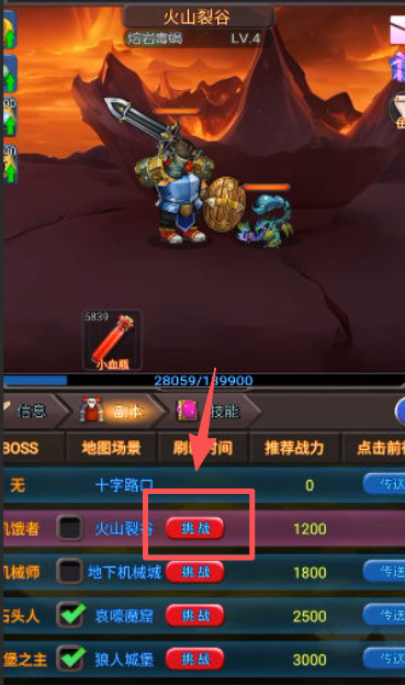 3、在地图场景中选择“挑战”按钮,开始秘境战斗,获取奖励。