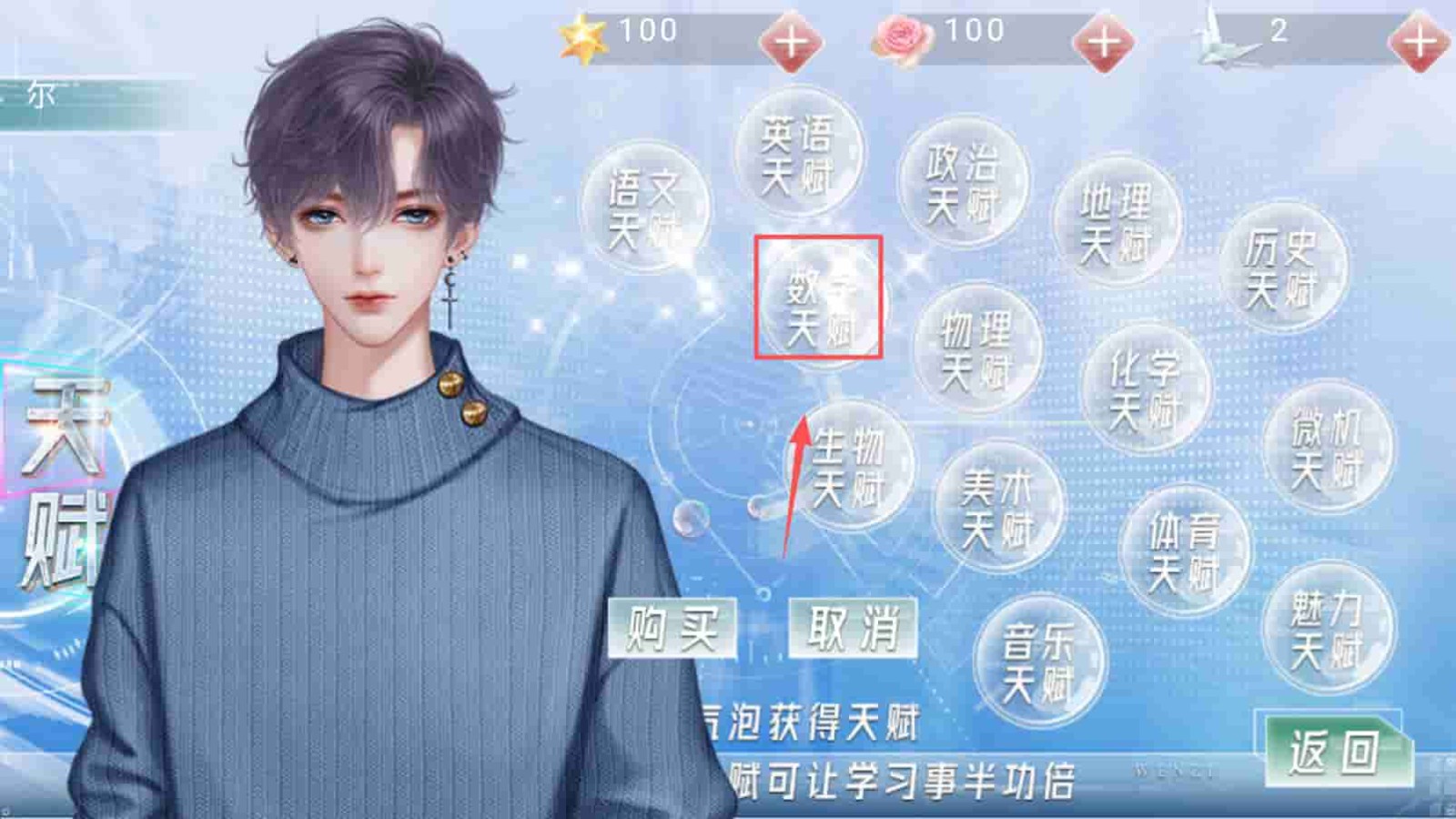 3、点击“天赋”选择学科提升天赋,增强角色学习能力。