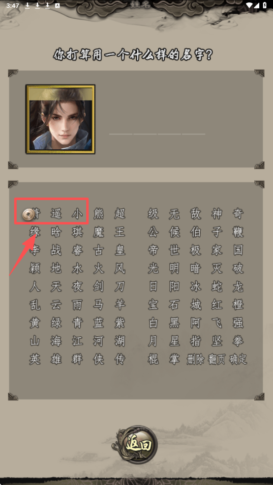 2、选择角色名字。在角色创建界面,点击选择名字,输入你的角色名。
