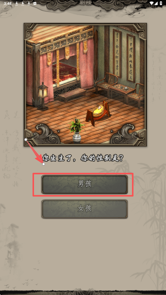 4、选择角色性别。在角色创建界面,选择角色的性别,开始游戏。