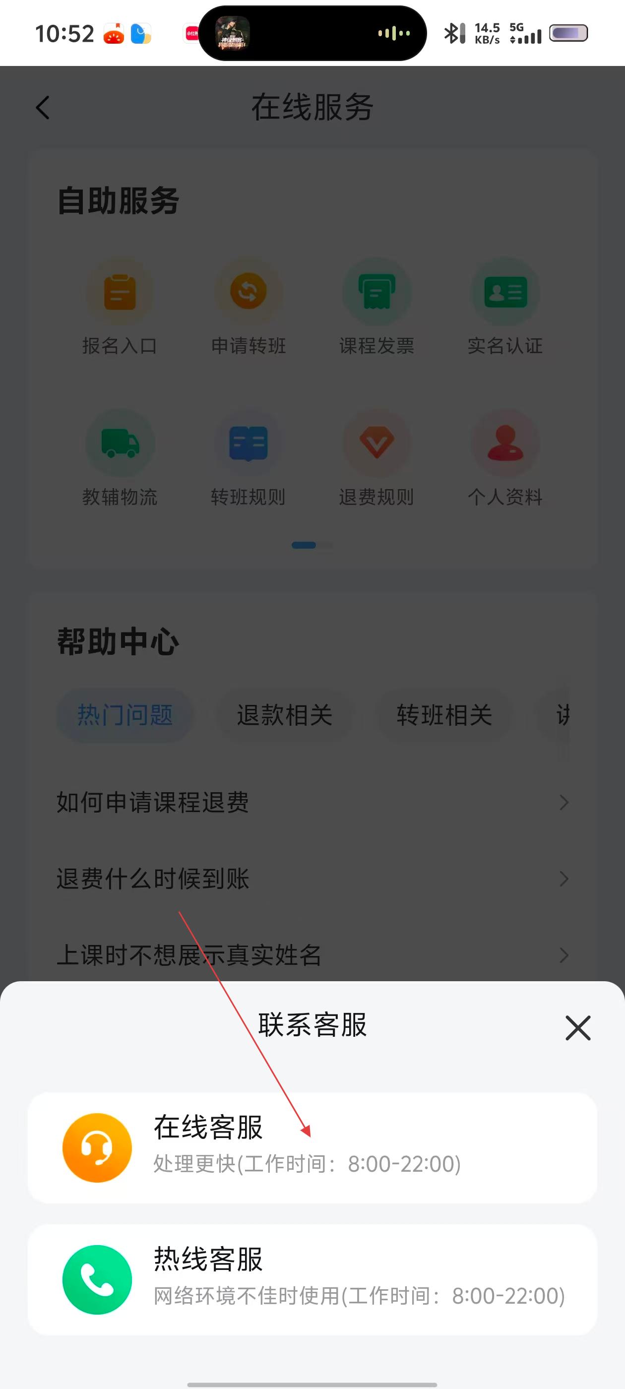 4、点击【联系客服】后,可选择【在线客服】或【热线客服】,根据需求选取合适的客服方式。