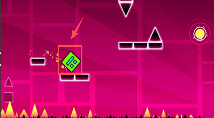 2、操控绿色方块,在平台上移动,避开尖刺等障碍物。