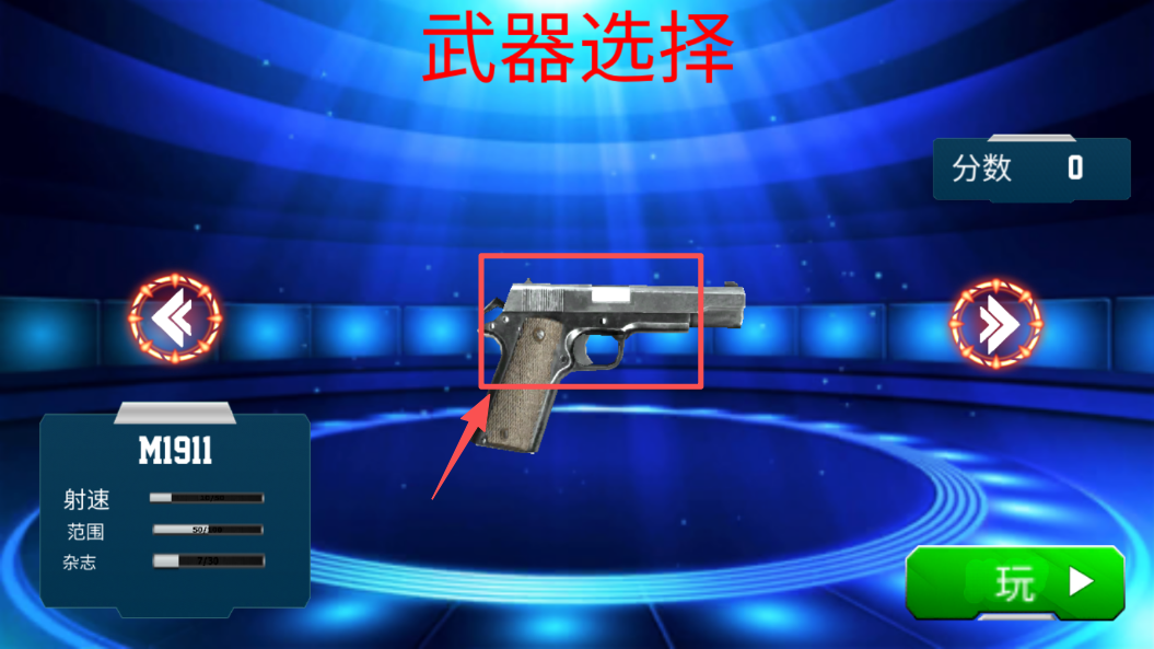 2、在武器选择界面,点击选择你的武器,例如M1911,准备狩猎。