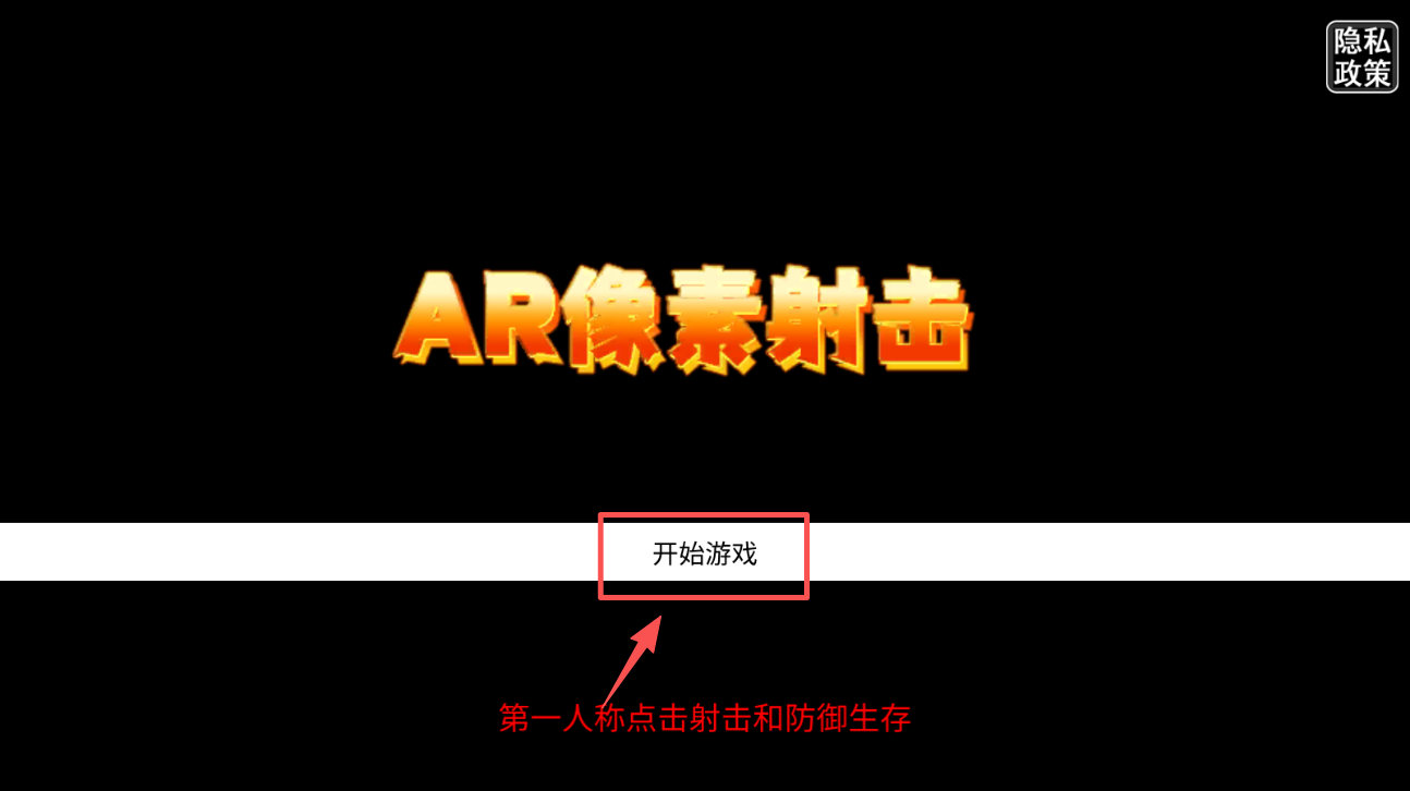1、点击“开始游戏”按钮,进入AR像素射击游戏,开启你的射击之旅。