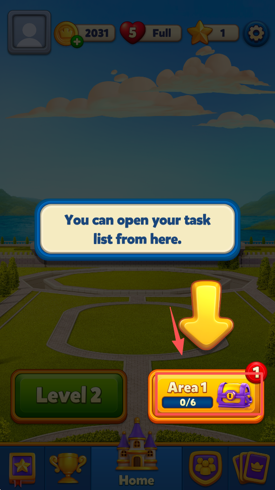 4、最后,在主界面选择“Area 1”开始新的任务,继续你的花园冒险。