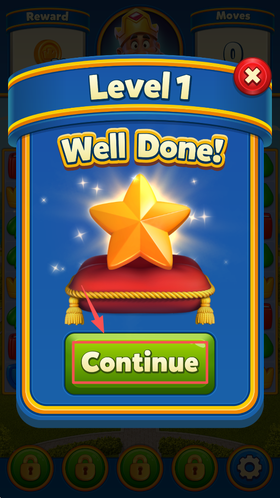 3、然后,完成关卡后点击“Continue”按钮,领取奖励并进入下一关。