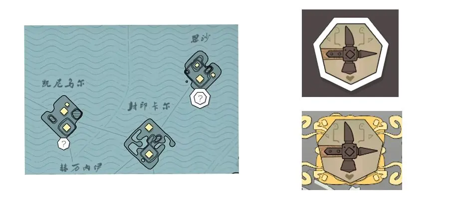 2、游戏中遇到的旗帜,旗帜中间标志是彩色的表示解锁后可以在后续存档中初始就携带的;如果是白底的标志就是局内才能使用的
