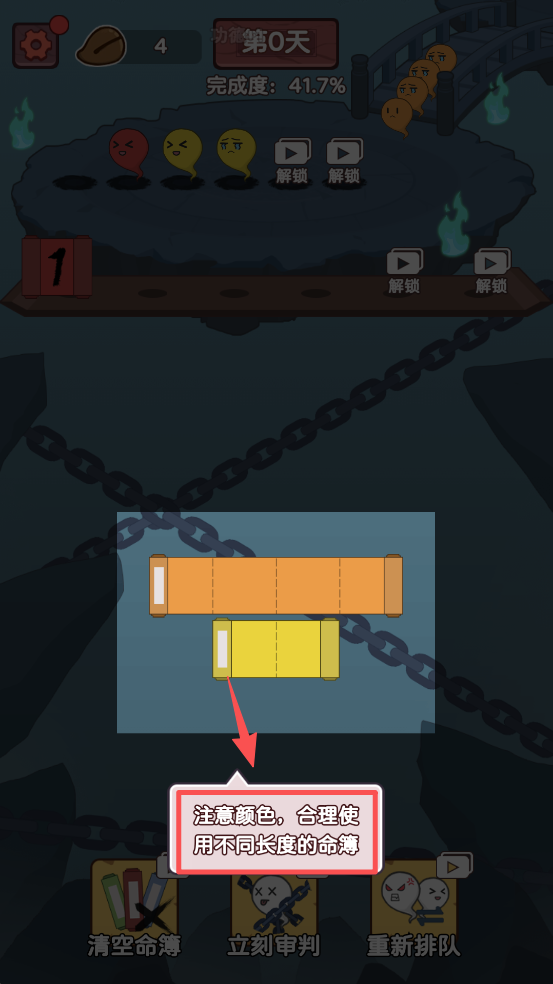 4、根据颜色和长度选择合适的命簿,以完成游戏目标。