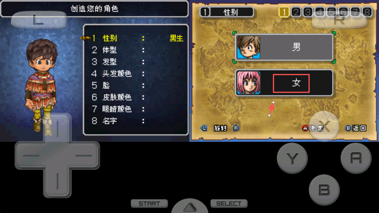 2、在版权信息结束后,点击“START”按钮,开始新游戏,进入角色创建界面。