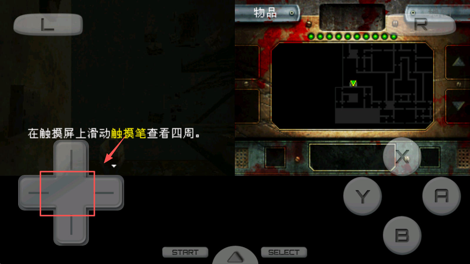 4、在游戏界面,使用触摸屏滑动查看四周环境,按“X”键进行物品互动或确认操作。