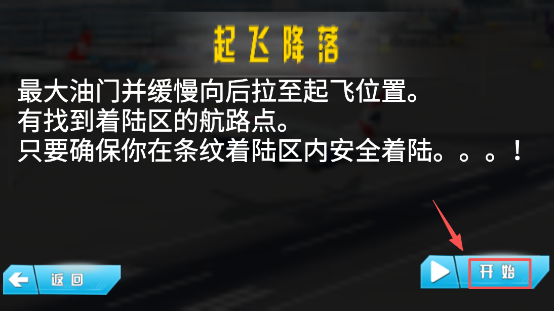3、阅读起飞降落指南,点击“开始”按钮开始飞行。