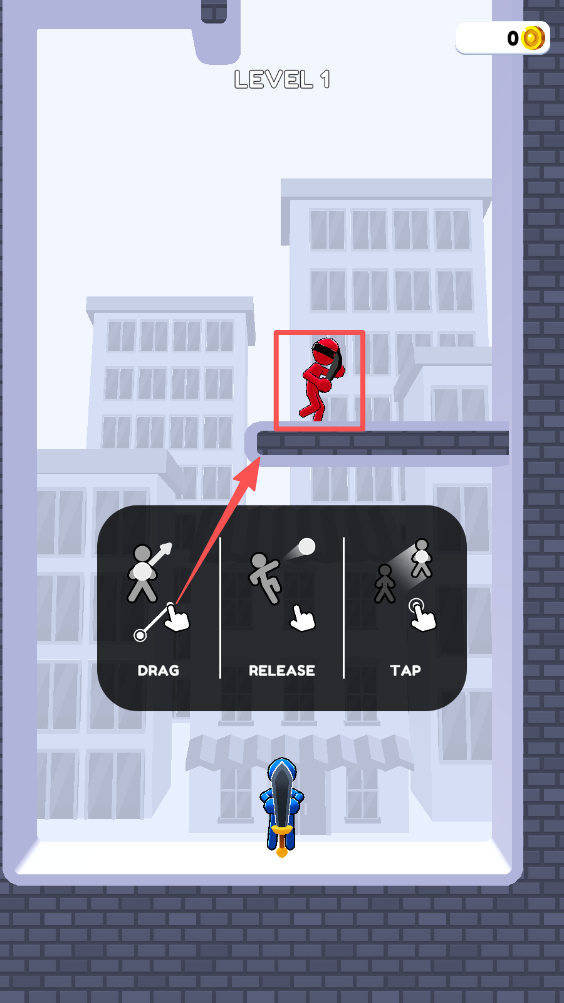 2、接着,拖动道具如钩子,将其释放到目标位置,以帮助英雄移动。